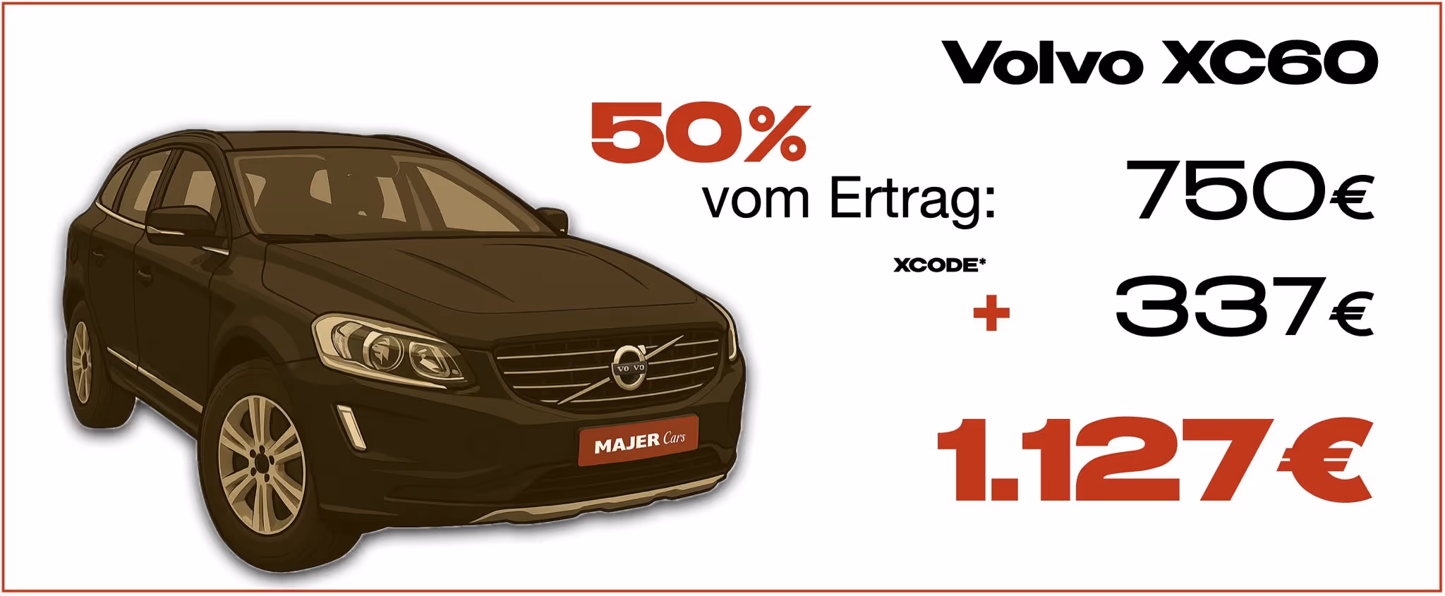 *Alle Angaben sind Beispielrechnungen aus realen Projekten der MAJER Cars GmbH. Der tatsächliche Ertrag variiert je nach Markt, Region, Einsatz und Preisentwicklung. Eine konkrete Gewinnerzielung wird nicht garantiert.