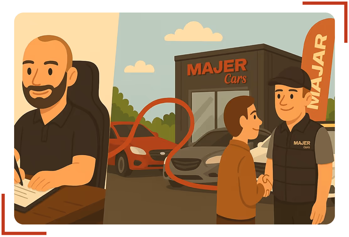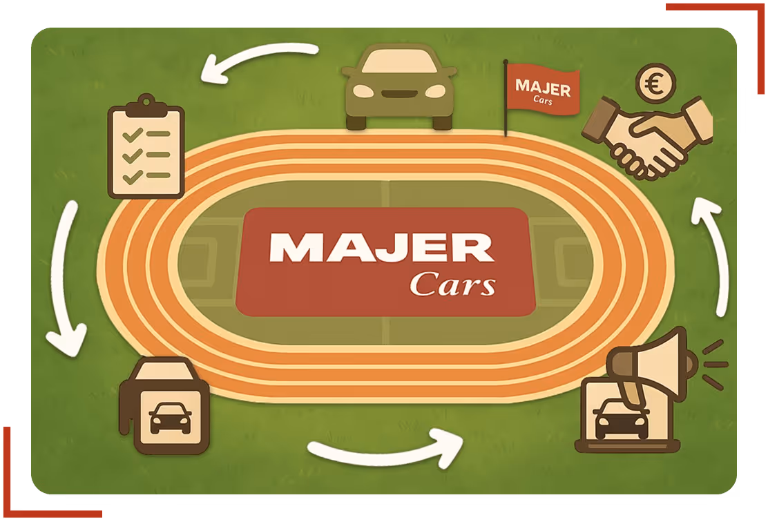 Langfristig unterstützen wir dich dabei, dein Geschäft weiter auszubauen – bis hin zum möglichen eigenen Bestand und zur Option als Franchise-Partner von MAJER Cars. Durch Inzahlungnahmen, ergänzende Finanzierungsmodelle und Zusatzservices kannst du dich schrittweise vom erfolgreichen Automakler zu einem erfolgreichen MAJER Cars Autohaus-Unternehmer entwickeln – auf der Basis unserer Marke, unseres Know-hows und unserer erprobten Prozesse.